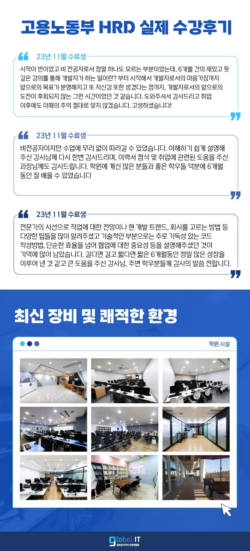 회사명 : (주)글로벌 아이티(IT) 인재개발원 | 사업자등록번호 : 119-81-85582 | 대표자명 : 이수일